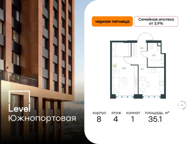 В северной части района Печатники продается 2-комнатный апартамент площадью 39.60 кв.м без отделки. Апартаменты расположены на 3 этаже 13-этажного корпуса Корпус 14 в жилом комплексе комфорт-класса Level Южнопортовая (компания Level Group/Левел групп). Отличная транспортная доступность: - 10 мин. пешком до станции метро "Кожуховская"; - 20 мин. пешком до станции МЦК "Дубровка"; - 3 мин. на авто до ТТК; - 13 мин. на авто до Садового кольца; - 15 мин. на авто до Бульварного кольца. Продуманный архитектурный проект: - авторская архитектура от бюро СПИЧ; - уникальные виды на реку, парки и достопримечательности города; - высота потолков в квартирах до 6 м; - окна высотой до 1,87 м с высоким коэффициентом сопротивления теплоотдаче. Расположение: Level Южнопортовая строится в северной части района Печатники - самой приближенной к центру. Здесь будет сформирован новый район "Южный порт", где построят крупный жилой и общественно-деловой центр, аналогичный Москва-Сити. В течение 10-12 лет в этом месте появятся не только жилые дома, но и развитая инфраструктура для жизни и работы. А еще совсем рядом находится набережная Москвы-реки, где планируется построить причалы для речных трамвайчиков и канатную дорогу. Уже сейчас вокруг жилого комплекса работают десятки магазинов и торговых центров, рядом расположено 6 парков, среди которых музей-заповедник "Коломенское". В 10 минутах пешком - 2 муниципальных и 2 частных детских сада, 7 общеобразовательных школ. Внутренняя инфраструктура: Для отдыха жителей в каждом корпусе предусмотрено лобби, оснащенное местами для отдыха, гостевыми санузлами и лапомойками, а в отдельных корпусах - камином. За счёт больших окон и высоких потолков пространства будут наполнены воздухом и светом. На первых этажах жилого комплекса откроются кафе, магазины, салоны красоты, фитнес-центр. Для детей строятся собственные детский сад и школа. Благоустройство: Внутренний двор комплекса разработан совместно с бюро GAFA. Основная идея - создать аналог Центрального парка в Нью-Йорке, гармонично сочетая высотные здания и большое изолированное парковое пространство. Вся площадь двора-парка будет огорожена и составит более 2 га, из которых 45% - озеленение. Одним из самых важных ландшафтных элементов здесь станет небольшая речка, наполняющаяся во время дождя. Вокруг неё появится сеть из островов, внутри которых расположатся тематические зоны спорта и отдыха. Технологии и инженерия: - автоматическая передача в управляющую компанию показаний квартирных счётчиков; - телефонная связь, телевидение и интернет на базе оптической мультисервисной сети; - гостевой Wi-Fi в лобби и на территории двора; - единый ключ доступа для входа на территорию комплекса. Продается квартира элитные на улице Южнопортовая в Москве.