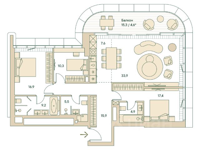 СТАРТ ПРОДАЖ Четырёхкомнатная wellness-резиденция площадью 188.5 кв. м. на 3 этаже с видом на Рублёвское шоссе и двор в доме премиум-класса Springs. В квартире выполнена чистовая дизайнерская отделка. Резиденция наполнена светом и воздухом, благодаря панорамному остеклению и высоким потолкам. На первом этаже дома расположены: - фитнес-центр с бассейном; - SPA с хаммамом; - бьюти-зона с массажным кабинетом. - ресторан. Все сервисы доступны исключительно для резидентов. Всего в 2 минутах ходьбы от дома находится заповедный парк Фили прекрасное место для спокойного и активного отдыха. Зеленый массив, набережная, велотропы и открытые зоны для йоги, а также шахматный клуб, летний кинотеатр, множество беседок и кофеен. До делового комплекса Москва-Сити всего 16 минут, а центр — в 14 минутах езды по Кутузовскому проспекту. Удобный выезд к Рублёвскому шоссе — отличная возможность на выходных сбежать с детьми за город, потратив на дорогу меньше получаса. Концепция благоустройства Springs, разработанная студией Wowhaus, воплощает идею взаимного проникновения парка и озеленения внутренней территории: естественная растительность, дополненная акцентами из цветников, плавно вступает во двор. В сочетании с бионической архитектурой дом является органичным продолжением природного ландшафта парка. Элитное жилье - квартира на улице Звенигородская в Москве.