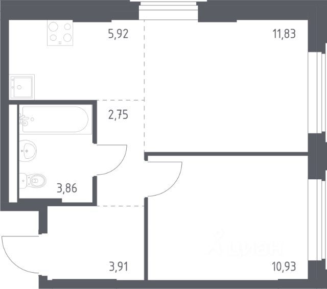 В продаже 1-комнатная квартира в корпусе 10 ЖК 'Квартал Западный'. Квартира располагается на 1 этаже, общая площадь 39.2 м2.