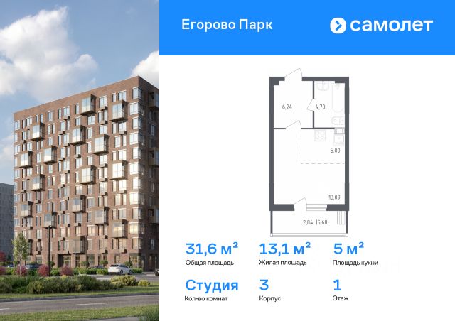 • ✅ Минимальная площадь: 13,1 м²