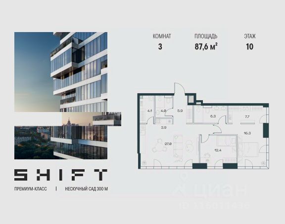 3-к квартира в премиальном комплексе SHIFT на 10-м этаже в 18 этажном здании. Общая площадь 90.4 кв. м. SHIFT - новый премиальный проект от девелопера PIONEER в Донском районе, в 300 м от Нескучного сада. Главная особенность проекта - 5 башен, в которых воплощен принцип модульной архитектуры: каждый этаж смещен относительно предыдущего, что создает эффект парящих в воздухе граней. Архитектура SHIFT создана самым востребованным бюро Москвы - "Цимайло Ляшенко и Партнеры". У жилого квартала удобное расположение: Ленинский проспект ведет прямо к Садовому кольцу и в центр, а быстрый выезд на ТТК станет ключом к любому району Москвы. Многообразие сервисов и коммерческих помещений создает в SHIFT всю необходимую инфраструктуру: кафе и рестораны, street retail, супермаркет и многое другое. Преимущества проекта: - Потолки от 3,65 м - Панорамные окна и террасы - Приватный ландшафтный двор-парк 4 000 м2 - Коммерческая инфраструктура 4 000 м2 - Клубная инфраструктура 350 м2 Девелопер: За 24 года на рынке недвижимости компания PIONEER реализовала более 30 проектов. Сегодня PIONEER - девелопер премиальной недвижимости с 4 проектами класса премиум и deluxe. Звоните, и мы с удовольствием расскажем все подробности о проекте и условиях покупки. Продажа от застройщика. Покупка доступна в ипотеку.