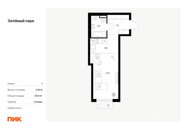 • ✅ Минимальная площадь: 22,8 м²