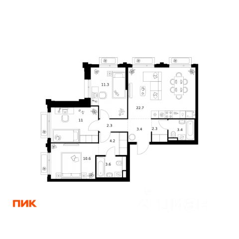 Трехкомнатная евроквартира для большой семьи. -Мастер-спальня с личной ванной и местом для системы хранения -Отдельная уютная детская комната -В квартире предусмотрено классическое остекление с эркерами -Второй санузел для удобства каждого члена семьи -Просторная кухня-гостиная в центре квартиры для семейных торжеств -Удобная ниша в коридоре для системы хранения Молодой район для жизни "Акценты" в классе бизнес-лайт — точка роста на севере Москвы. Он предлагает элегантные и строгие фасадные решения, авторский ландшафтный дизайн, а также функциональные и доступные по цене планировки. Проект находится в семи минутах пешком от станции метро "Лианозово" и одноименной МЦД-1. Добраться до МКАД можно будет за 10 минут на авто, а дорога до центра займет около 20 минут. Жилой комплекс, расположенный в районе Восточного Дегунино, предлагает развитую инфраструктуру для тех, кто ценит выбор. Он имеет удобный доступ не только к транспорту, но и к паркам, школам, садам, больницам и другим социальным объектам. В пешей доступности находятся 4 поликлиники, 5 школ, 6 детских садов, 3 бассейна и баскетбольная академия. Еще рядом есть несколько лесопарков: "Лианозово" с аттракционами и спортивными площадками для тенниса, волейбола и баскетбола, "Останкино" с конным клубом, прудом и пейнтбол-площадками. А "Северные Дубки" — это завораживающее пространство для прогулок под кронами вековых дубов, берез и лип. Кроме того, в районе не будет скучно и юным жителям. Можно оттачивать трюки в скейтпарке "Союз". Ловким и прыгучим советуем записаться в акробатический центр "Белка".
