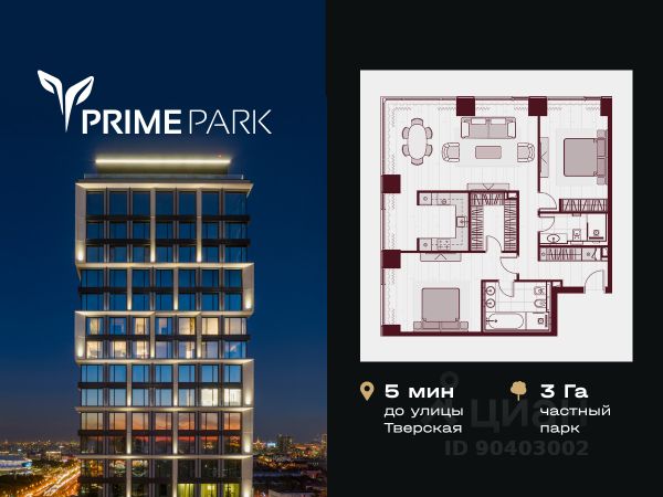 Жилой квартал Prime Park воплощает все преимущества premium-living. Престижная локация на Ленинградском проспекте, 37: - 5 мин. от Тверской улицы, Патриарших прудов и Белой площади, - 20 мин. до аэропорта "Шереметьево" или "Москва-Сити", - 4 парка — Ходынское поле, Петровский и Чапаевский парки, Березовая роща, - 4 станции метро — "ЦСКА", "Аэропорт", "Динамо" и "Петровский парк". Многократный победитель премий European Property Awards и Urban Awards, а также на протяжении пяти лет остается самым продаваемым проектом в своем сегменте. Premium-living Консьержи предугадывают желания резидентов и берут на себя выполнение практически любых бытовых задач. В квартале также есть парк-рейнджер и охрана. Для дополнительного удобства в МОПах предусмотрены почтовые комнаты, колясочные и комнаты для мытья лап домашних питомцев, комната для хранения интернет-заказов. Наличие сервисного входа для персонала позволяет разделить трафик, сохраняя приватную атмосферу в лобби. Резидентам нужно открыть только одну дверь, чтобы оказаться дома: valet-парковщики открывают дверь автомобиля и отвозят его на подземный паркинг, беллмены открывают двери при входе в башню и помогают донести вещи до квартиры, интеллектуальная система обеспечивает бесконтактный вызов лифта. Развитая инфраструктура Близость к центру Москвы, рядом крупнейший ТЦ "Авиапарк", ВТБ Арена, Мегаспорт, ВЭБ Арена, в окружении красивейших парков, включая ультрасовременный Ходынский парк площадью 25 га с панорамными качелями, набережной, фонтанами, детскими и спортивными площадками. На территории квартала предусмотрены приватный фитнес-центр с 25-метровым бассейном и спа, подземный паркинг с кладовыми, местами для хранения велосипедов, электрозарядками и детейлинг-центром для обслуживания автомобилей. На первых этажах башен расположатся кафе и рестораны, цветочный магазин, аптека, салон красоты, премиальный супермаркет и бытовые сервисы. Частный парк Общее парковое пространство квартала — 5,5 га, из них 3 га отведено под частный парк эксклюзивно для резидентов. Большой фонтан, аллеи для прогулок, крупномерные деревья, арт-инсталляции, водные глади, детские площадки и воркаут-зона создают гармоничное сочетание жизни на природе со всеми преимуществами мегаполиса. Уникальная квартирография Более 80 вариантов планировочных решений от однокомнатных квартир до двухуровневых дуплексов и пентхаусов. Панорамные окна, высокие потолки, мастер-спальни, балконы и террасы создают особенный комфорт и уют. Авторская архитектура и дизайн Четыре башни сданы, ключи выдаются в день сделки, 2 башни на этапе строительства, сдача в 2023 и 2024 гг. Уникальный архитектурный ансамбль и ландшафтный дизайн, благородные и ценные материалы в оформлении лобби, предметы искусства, арт-объекты и элементы декора, выполненные на заказ специально для Prime Park, становятся отражением яркой индивидуальности резидентов квартала.