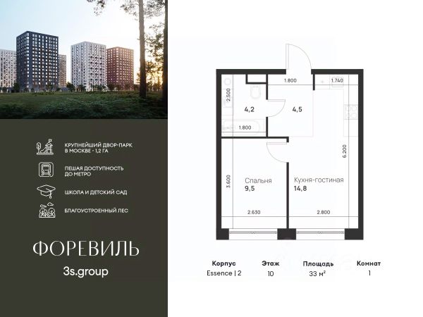 Продаётся 2-к квартира 42.1 кв.м. на 10-м этаже 22 этажного дома, корпус 2 - Резиденция "Сочи" . Без отделки. Легендарный квартал "Новая звезда" продолжается II очередью, которая спроектирована как мультифункциональный кластер. ЖК "Новая Звезда" расположен на территории Новой Москвы, в 10 мин. от м. Теплый стан и в 9 мин. пешком от строящейся станции метро "Бачуринская". Дизайн квартала спроектирован так, чтобы создать 2 города — Гостиный двор и комплекс жилых резиденций. Гостиный двор это стилобат, в котором разместятся рестораны, магазины, спортивные секции, детские кружки. Это место для активной городской жизни прямо в вашем квартале. Гостиный двор, безусловно, является уникальным форматом организации общественной жизни, предлагая жителям квартала весь необходимый спектр услуг в шаговой доступности от дома.. Жителям II очереди квартала "Новая звезда" будут доступны все инфраструктурные преимущества единого квартала: - образовательный кластер с уже построенной инновационной школой нового поколения; - спортивная инфраструктура; - торговые площади с услугами на первых этажах жилых домов.Прямая продажа от застройщика ООО СЗ "ГСД".