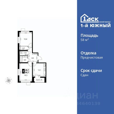 Прямая продажа от застройщика! Жилой Комплекс класса Комфорт Плюс. Продаётся 2-к квартира номер 33 общей площадью 58.9 кв.м. на 10-м этаже 24 этажного здания. Предчистовая отделка. Цена с учётом скидки. Особенности квартиры: - МЦД-5 в пешей доступности - Квартал с южным садом - Свои 3 детских сада и 2 большие школы - Просторная спальня, в которой можно разместить большую кровать. - Угловая планировка - больше пространства для ваших идей. - Гостевой санузел - комфорт и удобство для ваших гостей. - Раздельный санузел - больше удобства для всех членов семьи. - Просторная кухня - место для семейных ужинов и кулинарных экспериментов. - Просторная мягкая зона - комфорт и уют для отдыха всей семьи. - Возможность добавить спальное место - дополнительный комфорт для гостей. - Гардеробная - удобство для хранения и организации вещей. - Ниша под шкаф - компактное и удобное место для вещей. - Лоджия - уютное место для отдыха и тишины. Квартира с предчистовой отделкой (White box). Вам не придется заниматься черновыми и трудоёмкими работы, а чистовую отделку и дизайн - сделайте на свой вкус. Информация о комплексе: Одно из преимуществ проектов 1- ДСК большие застекленные лоджии. Другое преимущество честный евро-формат. Во всем проекте предусмотрена система Умный дом. В состав устанавливаемого пакета устройств входит: WiFi реле для управления группами потребителей, беспроводной кран перекрытия с эл. приводом, беспроводной сенсор протечки, Яндекс Станция Мини. Его расположение можно назвать удачным за счет транспортной доступности и близости к природным объектам. По соседству лес, а в каждом дворе плодовые деревья. Весной квартал окутывает бело-розовое облако: это цветут яблони, груши, сливы. К августу в воздух наполняется ароматом созревших плодов. Зимой среди покрытых инеем деревьев протянулась лыжня. Транспортная доступность: - Общественный транспорт: Действующая ж/д станция Булатниково (в перспективе будущая МДЦ D5) в пешей доступности, всего 10-12 минут. - Личный автотранспорт: Удобный выезд на трассу М4-Дон в сторону Москвы и области 850 м, до МКАД - 1 км Внутренняя инфраструктура: Красивые продуманные подъезды - еще одно преимущество проекта 1-й Южный. Вход в сквозные подъезды есть и с улицы, и со двора. Благодаря сплошному остеклению в них всегда светло и уютно. Подъезды расположены на уровне земли, поэтому и молодым родителям с коляской, и жильцам с ограниченными возможностями вход и выход неудобств не доставят. В помещении предусмотрено место под стойку ресепшен с выводом инженерных сетей. Если жильцы решат на общем собрании, что необходим охранник или консьерж, организовать для них рабочее место можно быстро и с минимальными затратами. В подъездах предусмотрены уборные для детей и взрослых. Колясочные в каждом подъезде позволяют поддерживать порядок и чистоту на этажах. На случай прогулки с четвероногим питомцем в непогоду в подъездах устроены лапомойки. Во дворах и на общественных территориях 1-ого Южного