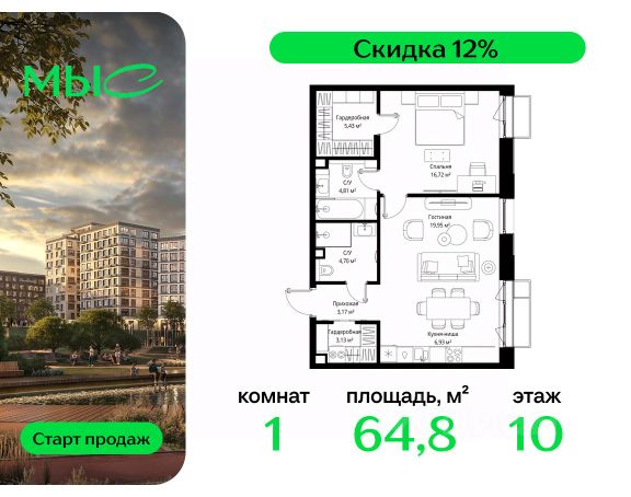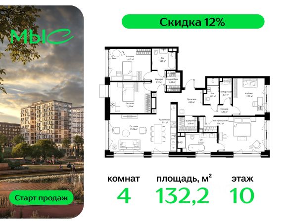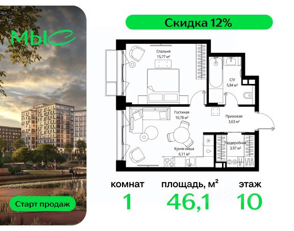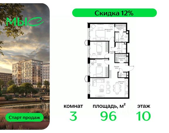 Прямая продажа от застройщика. Продаётся 2-комнатная квартира общей площадью 77.84 м² без отделки в премиальном жилом комплексе "МЫС" на 10-м этаже 12 этажного дома. Квартира расположена в корпусе "Волга". Проект МЫС — это, прежде всего, идеальное место для семей. В рамках проекта построят государственную школу, два детских сада и дворец спорта площадью 20 000 м2 с термальным комплексом, выплывным бассейном, фитнес-залом, теннисными, сквош и падел кортами и секциями для детей. На территории площадью, сравнимой с тремя парками Зарядье, появятся кафе и рестораны, пруд с набережной, спортивные и детские площадки, скейт-парк, лыжные и веломаршруты. Расположение: - 2 минуты до скоростной трассы М1 и Минского шоссе; - 10 минут до МКАД; - 15 минут до МЦД Лесной Городок - 20 минут до делового центра "Москва-Сити"; - 28 минут до аэропорта "Внуково". Благоустройство: - велосипедные и лыжные маршруты; - собственная набережная и парк; - лаунж-зоны в окружении природы; - беседки у очага; - дворец спорта площадью 20 000 м²; - термальный комплекс с тремя бассейнами; - 4 теннисных и падел-корта; - 6 сквош-кортов; - многофункциональный спортзал; - скейт-парк; - просторная площадь для прогулок с фонтаном; - детский Клуб с творческими секциями; - гастро-доминанта; - кафе у пруда, рестораны, ритейл. Окружение - соседство с лесным фондом; - школа на 1250 мест и 2 детских сада на 350 и 255 мест; - Дубковский и Подушкинский леса, парк "Рассказовка", Мещерский парк. Действуют специальные условия при 100% оплате, подробности уточняйте у менеджера в офисе продаж.
