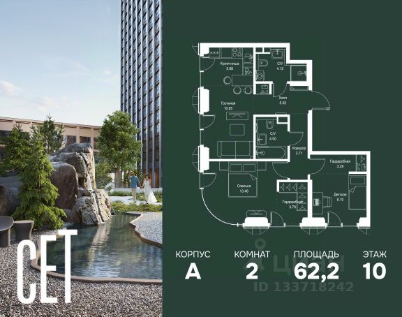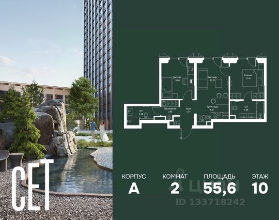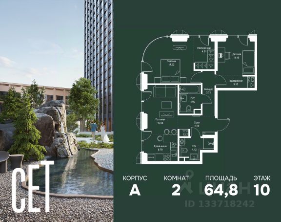 Прямая продажа от застройщика. В ЖК Сет продается 1-комнатная квартира площадью 33.92 м², расположенная в корпусе А, на 10 этаже 52 этажного дома. Сет имеет стратегически выгодное расположение в ЗАО, в районе с большой историей и блестящим будущим: между природной зоной долины реки Сетунь и Кутузовским проспектом. В рамках возведения первой очереди предусмотрено три корпуса высотой 18, 45 и 59 этажей. На верхних этажах спроектированы общедоступные смотровые площадки с панорамным обзором на центр столицы. Преимущества проекта: • Функциональные планировочные решения • Контроль проникновения через входную дверь • Система управления освещением и температурой в квартире • Система защиты от протечек с функцией перекрытия воды • Вход в подъезд по биометрическим считывателям Face ID • Скоростные лифты • Двухуровневый подземный охраняемый паркинг на 495 машино-мест Застройка Сет включает в себя не только жилые корпуса, но и инфраструктурные объекты. Все необходимое для повседневного комфорта будет расположено в шаговой доступности: • Фитнес-Клуб с бассейном • Ведущая городская школа, детский сад и школа искусств • Центр культуры и досуга • Медицинский центр • Кафе и рестораны Расположение комплекса: Пешком: • Метро "Давыдково" - 17 минут • Парк "Долина реки Сетунь" - 3 минуты • Открытие новых станций метро в шаговой доступности в будущем Инфраструктура: Разнообразить свой день резиденты Веер смогут также проводя больше времени на свежем воздухе. Двор разделен на 4 зоны разных эмоций и действий, которые пересечены и соединены веерными прогулочными маршрутами: • Спортивная площадка устроена в глубине "Кленовой рощи" • В "Чайном домике" будет создан навес с утеплением для отдыха в любую погоду • Площадки для детей воплотятся в "Волшебный лес" с цветами, зеркалами и световым дизайном • "Центральная площадь" устроена у водного оазиса живописного пруда. На машине: • "Москва-Сити" - 15 минут • Садовое кольцо - 20 минут • ТЦ "Океания" - 8 минут • ТЦ "Времена года" - 13 минут • Сколково - 12 минут • Гребной канал - 17 минут Компания MR предлагает своим клиентам специальные условия приобретения квартир в рамках программ ипотечного кредитования от банков-партнеров.