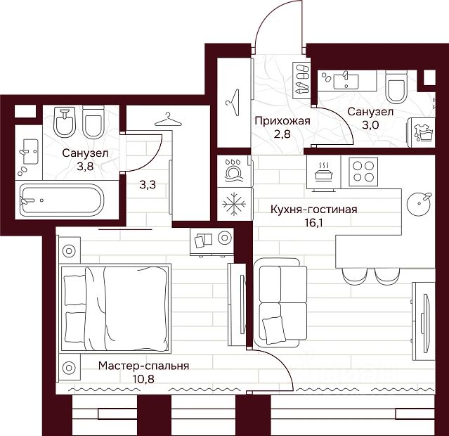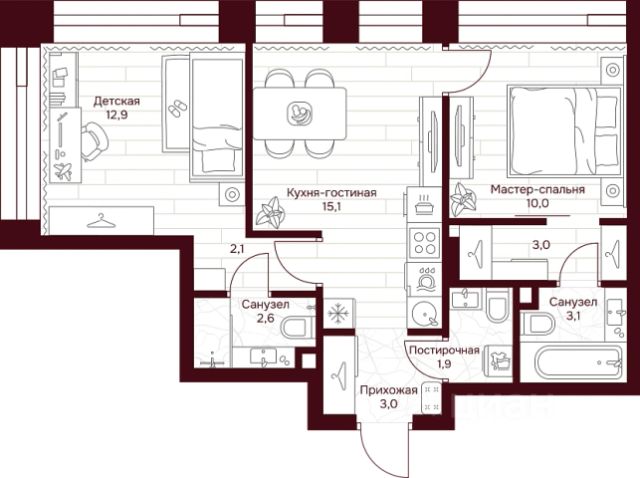 • ✅ Минимальная площадь: 31,1 м²