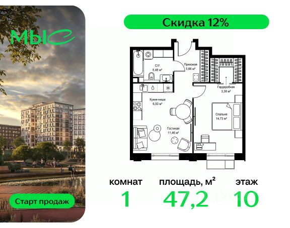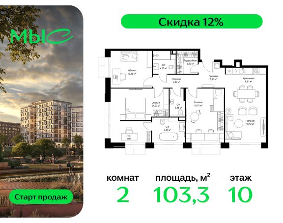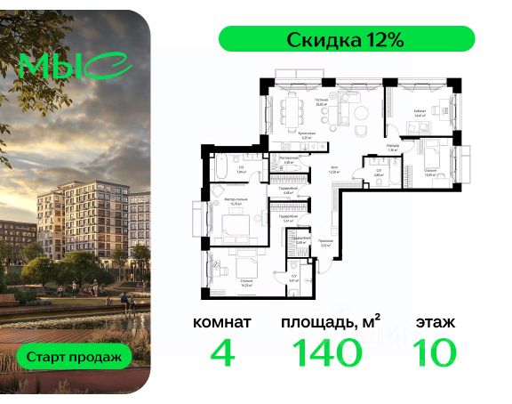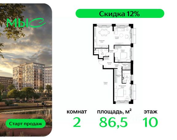 Прямая продажа от застройщика. Продаётся 2-комнатная квартира общей площадью 83.28 м² без отделки в премиальном жилом комплексе "МЫС" на 10-м этаже 12 этажного дома. Проект МЫС — это, прежде всего, идеальное место для семей. В рамках проекта построят государственную школу, два детских сада и дворец спорта площадью 20 000 м2 с термальным комплексом, выплывным бассейном, фитнес-залом, теннисными, сквош и падел кортами и секциями для детей. На территории площадью, сравнимой с тремя парками Зарядье, появятся кафе и рестораны, пруд с набережной, спортивные и детские площадки, скейт-парк, лыжные и веломаршруты. Расположение: - 2 минуты до скоростной трассы М1 и Минского шоссе; - 10 минут до МКАД; - 15 минут до МЦД Лесной Городок - 20 минут до делового центра "Москва-Сити"; - 28 минут до аэропорта "Внуково". Благоустройство: - велосипедные и лыжные маршруты; - собственная набережная и парк; - лаунж-зоны в окружении природы; - беседки у очага; - дворец спорта площадью 20 000 м²; - термальный комплекс с тремя бассейнами; - 4 теннисных и падел-корта; - 6 сквош-кортов; - многофункциональный спортзал; - скейт-парк; - просторная площадь для прогулок с фонтаном; - детский Клуб с творческими секциями; - гастро-доминанта; - кафе у пруда, рестораны, ритейл. Окружение - соседство с лесным фондом; - школа на 1250 мест и 2 детских сада на 350 и 255 мест; - Дубковский и Подушкинский леса, парк "Рассказовка", Мещерский парк. Действуют специальные условия при 100% оплате, подробности уточняйте у менеджера в офисе продаж.