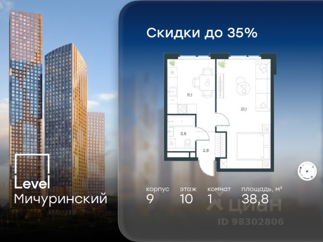 Цена указана с учётом скидки при 100%-й оплате, несубсидированной ипотеке, рассрочке (кроме программы "Рассрочка 0%"). В жилом квартале, расположенном на границе с природным заказником "Долина реки Очаковки", продаётся 3-комнатная квартира площадью 59.50 кв.м без отделки. Квартира расположена на 10 этаже 31-этажного корпуса 13 в жилом комплексе бизнес-класса Level Мичуринский (компания Level Group/Левел групп). Отличная транспортная доступность - 10 мин. пешком до станции метро "Мичуринский проспект" - 15 мин. пешком до станции метро "Аминьевская" - 7 мин. на авто до МКАД - 10 мин. на авто до ТТК - 15 мин. на авто до Москва-Сити Продуманный архитектурный проект - Выразительная архитектура от известных бюро: корпуса 1-6 - СПИЧ, корпуса 7-13 - Borisov Architects; - Из окон открываются живописные виды на парки, Москва-Сити и МГУ; - Высокие потолки до 6,35 м; - Стильные лобби с окнами в пол и высокими потолками до 4,7 м; - С каждого этажа дома на лифте можно спуститься в подземный отапливаемый паркинг. Расположение Level Мичуринский строится в одном из самых зеленых районов Москвы - Очаково-Матвеевское. Этот уголок столицы идеален для поддержания здорового образа жизни. В шаговой доступности от проекта находятся заказник "Долина реки Очаковки" - 1 мин. пешком и Очаковский парк - 7 мин. пешком. На велосипеде можно добраться до таких парков, как "Событие", парк Олимпийской деревни, парк 50-летия Октября и парк Школьников. В 15-минутной доступности на авто расположено более 30 детских садов (из них 14 в пешей доступности), 32 школы (из них 13 в пешей доступности) и 14 вузов. В ближайшем окружении работает более 25 медицинских учреждений, 11 спортивных клубов и 22 продуктовых супермаркета. Внутренняя инфраструктура На территории жилого комплекса строится три детских сада и школа. На первых этажах домов откроется супермаркет, фитнес-центр, ресторан, кафе и другие сервисы. Подземные этажи займут паркинги: трехуровневые в этапах 1 и 2, одноуровневый в этапах 3 и 4. Преимущества проекта - 4,5 га благоустроенной территории с видовым мостом, уличным кинотеатром, зонами для тихого отдыха, работы, воркаута, площадки для петанка, футбола, настольного тенниса и пляжного волейбола; - Дизайнерские лобби с панорамным видом на двор, мойками для лап животных и комфортными зонами ожидания. - Безопасность жителей: круглосуточное видеонаблюдение всех зон общего пользования (лобби, лифты, паркинги, детские площадки), система контроля доступа, управление видеодомофоном через мобильное приложение, единый ключ доступа на территорию жилого комплекса. - Технологии и комфорт: высокоскоростной Wi-Fi в лобби и на придомовой территории, автоматическая система контроля и учета ресурсов, абонентская связь с консьержем, распознавание номеров автомобилей при въезде/выезде в/из паркинга.