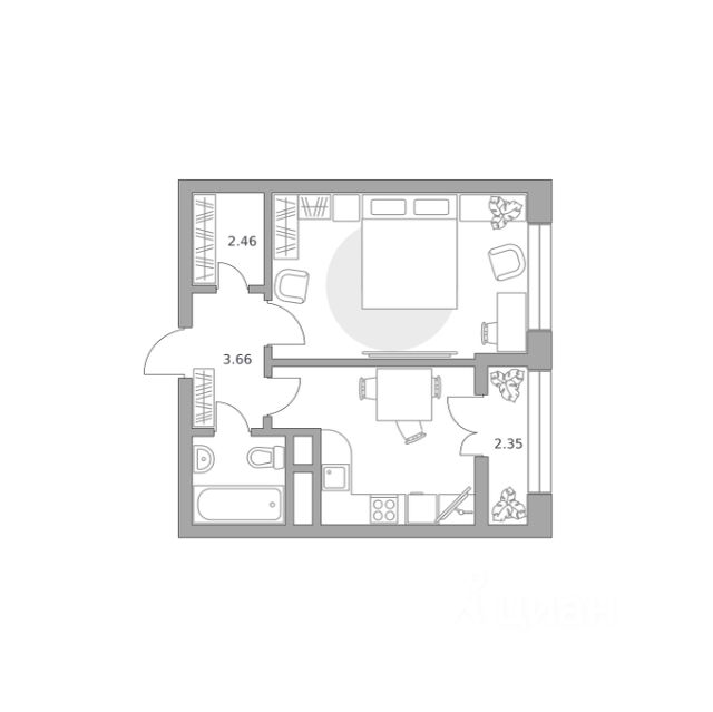 Продаётся студия 699, площадью 26,53 м², на 10 этаже в ЖК "Пехра" корпус 8. Стоимость — от 5166403 руб. Квартира без отделки, планировка односторонняя, окна во двор.