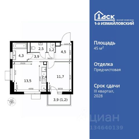 Прямая продажа от застройщика! Жилой Комплекс Комфорт класса. Продаётся 2-к квартира номер 230 общей площадью 45.8 кв.м. на 10-м этаже 25 этажного здания. Отделка Whitebox. Цена с учётом скидки. Особенности квартиры: - Линейная планировка - максимальная функциональность и удобство. - Раздельный санузел - больше удобства для всех членов семьи. - Можно оборудовать рабочее место - комфорт для работы и учёбы. - Лоджия - уютное место для отдыха и тишины. Квартира с предчистовой отделкой (White box). Вам не придется заниматься черновыми и трудоёмкими работы, а чистовую отделку и дизайн - сделайте на свой вкус. Информация о комплексе: Современный архитектурный проект "1-й Измайловский" - идеальное место для проживания, расположенное в восточной части Москвы в окружении 14 000 гектаров леса. Комплекс пронизан атмосферой здорового образа жизни и благополучия. Сиреневый сад и близлежащие лесопарки - это места, где можно насладиться лыжными прогулками зимой и тонизирующими пробежками летом. Расположенный между Щелковским шоссе и Амурской улицей, "1-й Измайловский" осмысляет себя не столько через близость к городским точкам притяжения, сколько через соседство с зелеными пространствами и спортивными объектами. Он отгорожен от шоссе застройкой первой линии и собственными садами здоровья. В его окнах - изумрудное море парка "Лосиный остров" и густые кроны окрестных дворов. В его графике - занятия спортом и прогулки в Измайлове. Транспортная доступность: Не более 2,5 км до станций метро "Щёлковская" и "Черкизовская" и МЦК "Локомотив". Щёлковское шоссе соединяет квартал с Северо-восточной хордой и МКАД, Центральным автовокзалом и Восточным железнодорожным вокзалом. Две автобусные остановки в паре минут ходьбы и 11 маршрутов общественного транспорта. На автомобиле 3 минуты до СВХ 12 минут до ТТК 15 минут до Садового кольца Внутренняя инфраструктура: Комплекс находится в исторически сложившемся районе Москвы с хорошим качеством и плотностью инфраструктуры. Торговые центры и сетевые магазины -6 детских садов, включая собственный детский сад на 125 мест -3 школы, включая собственную школу -Поликлиники и медицинские центры -Парки и зоны отдыха Расположение архитектурного проекта создает все условия для тех, кто стремится к здоровому образу жизни и для тех, кто уже сделал выбор в его пользу. В ближайшем окружении расположены несколько стадионов и множество спортивных объектов для занятий спортом на любой вкус: от всеми любимого футбола, баскетбола и до конного спорта. В окружении проекта более 30 километров организованных беговых и велодорожек.