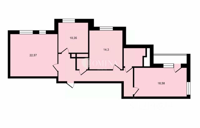 Общая площадь 40 кв м; комнаты изолированные (18 + 8 кв м); совмещенный санузел; потолки 2,7.