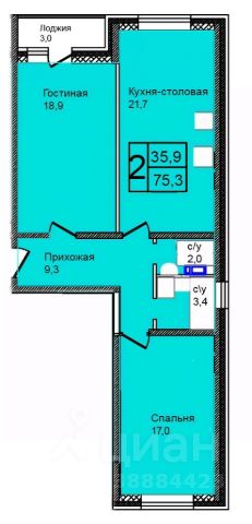 Продаётся 2-комнатная квартира в строящемся доме (Корпус 5), срок сдачи: IV-кв. 2027, общей площадью 75.3 кв.м., на 10 этаже.