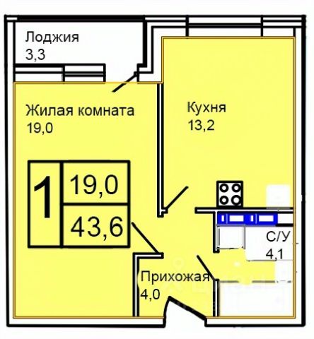 Продаётся 1-комнатная квартира в строящемся доме (Корпус 1), срок сдачи: IV-кв. 2027, общей площадью 43.6 кв.м., на 10 этаже.