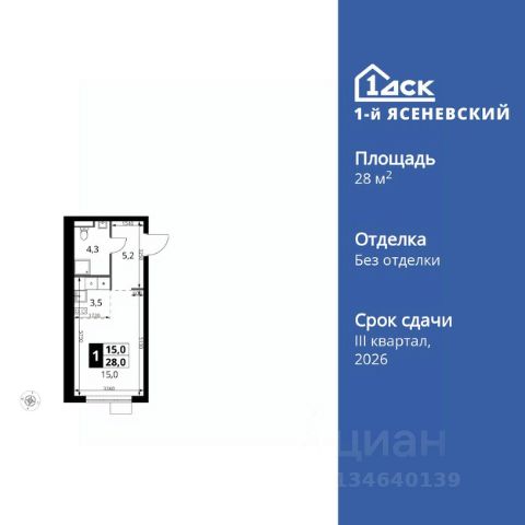 Прямая продажа от застройщика! Жилой Комплекс класса Комфорт Плюс. Продаётся 1-к квартира номер 894 общей площадью 32.6 кв.м. на 10-м этаже 18 этажного здания. Чистовая отделка. Цена с учётом скидки. Особенности квартиры: - Квартиры рядом с метро - м. Корниловская 9 мин пешком - 63 га лесопарка за окнами - Школа c ИТ-кластером и бассейном. 2 детских сада - Организуем показ в удобное для вас время! - Линейная планировка - максимальная функциональность и удобство. - Можно оборудовать рабочее место - комфорт для работы и учёбы. - Ниша под шкаф - компактное и удобное место для вещей. - Лоджия - уютное место для отдыха и тишины. Квартира с чистовой отделкой. Раскройте свою индивидуальность в создании своего уникального проекта, а трудоемкий ремонт мы возьмем на себя! Вы идете в ногу со временем и предпочитаете современные, универсальные дизайнерские решения? Или вы любитель строгой лаконичной классики? Тогда наши интерьеры придутся вам по душе! Выбирайте то, что ближе лично Вам и реализуйте свои задумки вместе с нами! Информация о комплексе: ЖК "1-й Ясеневский": преимущества городской инфраструктуры и природы. Пешая доступность к метро, школе с бассейном и ИТ-кластеру, а также 63 га Троицкого лесопарка под окнами. Закрытая территория с бульварами, велодорожками, кафе и дворами без машин. Фруктовые деревья и городские сады создают уникальную атмосферу. Всего в 1 км от МКАД - идеальный баланс для современной жизни. Транспортная доступность: До метро "Корниловская" - 12 минут пешком До метро "Тютчевская" - 25 минут пешком До метро "Теплый стан" - 10 минут на транспорте До метро "Ольховая" - 30 минут на общественном транспорте Личный автотранспорт: Выезд на Калужское шоссе - 500 м МКАД - 1 км Внутренняя инфраструктура: ЖК "1-й Ясеневский" - идеальное место для семей с детьми. Рядом Троицкий лесопарк для прогулок, а во дворах - современные детские площадки, разработанные с участием психологов. В шаговой доступности два детских сада и школа на 1100 мест с ИТ-кластером, бассейном и классами робототехники. Всё для счастливого детства и успешного будущего. Квартира с чистовой отделкой: ваш стиль без ремонта. Выбирайте современный дизайн или классику - мы воплотим ваши идеи. Готовые интерьеры для уникального дома.