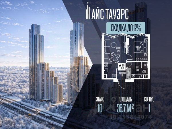 Скидка 12%, рассрочка 0% от застройщика. Продается 1-комнатная квартира на 10 этаже, 35.2 кв.м. площади в жилом комплексе "Айс Тауэрс", который расположен в Западном административном округе Москвы. Архитектура комплекса отличается панорамным остеклением фасадов. Квартиры продаются с опциональной отделкой white box. В комплексе установлены системы видеонаблюдения, климат-контроля (бризеры) и элементы системы "умный дом". Территория и расположение На придомовой закрытой территории обустроены детские площадки, зоны для воркаута и места для отдыха. Комплекс граничит с особо охраняемой природной зоной, что обеспечивает доступ к прогулочным маршрутам. Инфраструктура комплекса • Комьюнити-центр с универсальными залами, коворкингом и библиотекой. • Помещения для детских занятий и мастер-классов. • Предусмотрены кабинеты для приема специалистов (стилистов, массажистов). В комплексе работают круглосуточная консьерж-служба и служба доставки (внутри комплекса). Доступны услуги парковки (valet) и помощи с багажом (беллмены). Для повседневного удобства предусмотрены: • Колясочные и велосипедные хранилища. • Душевые для домашних животных и груминг. • Мобильное приложение для управления сервисами.