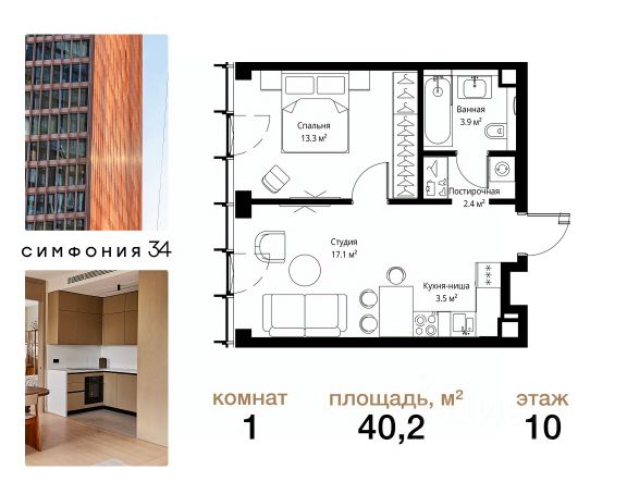 Дом сдан. Ключи в день покупки! В продаже 1-комнатная квартира площадью 41 м² с предчистовой отделкой на 10 этаже 49 этажного дома в корпусе Кристал. ЖК Симфония 34 - концептуально новый жилой комплекс премиум-класса с подземной парковкой, состоит из четырех башен высотой 36 - 54 этажа. Квартиры сдаются с базовой (предчистовой) отделкой MR BASE или дизайнерской чистовой отделкой MR READY. Высота потолков 3 - 6 метров, окна высотой до 2,6 м. Более 100 кладовых в подземной части ЖК и более 500 на этажах. Безопасность - Система контроля входа на территорию комплекса, биометрия - Система автоматического водяного пожаротушения и противопожарного водопровода, система пожарной вентиляции - Доступ на парковку при помощи системы распознавания автомобильных номеров, карточка для контроля доступа резидентов - Система видеонаблюдения - Круглосуточная связь через приложение, телефон, голосовые сообщения с охраной, консьержем, call-центр. Расположение Пешком - 6 минут до метро "Дмитровская" - 15 минут до Тимирязевского парка На машине - 5 минут до Савеловского вокзала и Аэроэкспресса в Шереметьево - 10 минут до Москва-Сити и Садового кольца Благоустройство - 70% территории отведены под зеленые насаждения и ландшафтный дизайн - Приватный Японский сад - Детские площадки с зонированием по возрасту - Clubhouse для резидентов - Wellness & SPA - Зона для пикника, зона с гамаками - Центральное лобби, ресторан, коммерческие помещения - Дополнительный вход/выход на территорию комплекса Окружение - В 10 минутах от Симфония 34 находится дизайн-завод Flacon, где регулярно проходят культурно-образовательные и развлекательные мероприятия - Тимирязевский парк расположен в 850 м. Площадь парка 232 га - Рядом расположен парк "Дубки", площадью 16,5 га. - В 15 минутах расположен Хлебозавод 9. Здесь находятся шоурумы брендов, кафе разных кухонь мира, образовательные проекты и площадки для мероприятий Компания MR предлагает своим клиентам специальные условия приобретения квартир в рамках программ ипотечного кредитования от банков-партнеров.