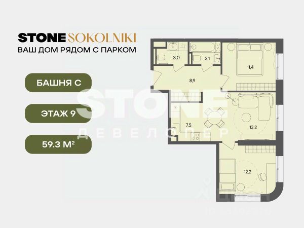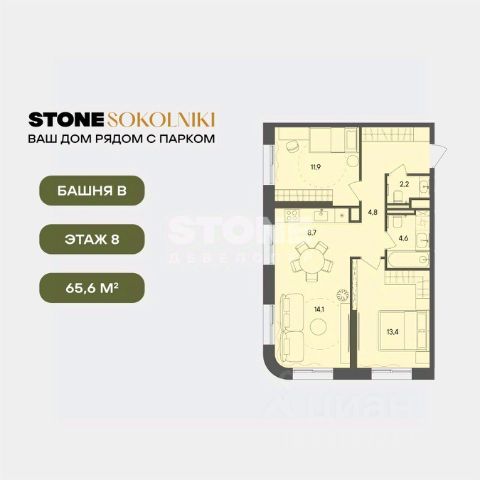 В семейном жилом квартале, расположенном в окружении более 500 га леса и объектов исторического наследия, продается 1-комнатная квартира площадью 41.7 кв. м без отделки. Квартира расположена на 10 этаже 12-этажного корпуса 2.1 жилого квартала бизнес-класса КОД Сокольники от девелопера Новая Эра. Отличная транспортная доступность - 3 мин. пешком до станции МЦД-3 "Митьково"; - 7 мин. пешком до станции метро "Сокольники"; - Удобный выезд на Русаковскую улицу; - 5 мин. на авто до ТТК; - 15 мин. на авто до Садового кольца. Продуманный архитектурный проект - Выразительная архитектура, созданная бюро "Остоженка"; - 70% квартир в квартале - видовые, что позволяет ежедневно наслаждаться панорамами на парк Сокольники, Останкинскую телебашню, исторический центр и Алексеевский монастырь; - 30% квартир - угловые. Увеличенные оконные проемы, панорамное остекление и продуманное расположение комнат усиливают эффект обзорности: гостиные и спальни получают максимум дневного света и живописные виды, которые становятся частью интерьера; - Высокие потолки от 3 метров в типовых планировках; - Дизайнерские лобби от модной студии 211.Studio; - Двухуровневый паркинг с подогреваемой рампой и пологим заездом, подходящим даже для спорткаров; Расположение Семейный жилой квартал КОД Сокольники - это дома бизнес-класса в престижном районе Сокольники. Район отличает хорошая транспортная доступность: несколько минут пешком до станции метро "Сокольники" и платформы МЦД-3 ("Митьково"), регулярные трамвайные и автобусные маршруты, удобный выезд на Русаковскую улицу и Третье транспортное кольцо. До Садового кольца можно доехать за 15 минут. Для пешеходов и велосипедистов в парковой зоне будут оборудованы широкие тротуары и велодорожки, обеспечивая комфортные условия для активного образа жизни. Внутренняя инфраструктура Резидентам будет доступна развитая клубная инфраструктура: собственный фитнес-рум, коворкинг с панорамным видом на парк, игровая комната для детей, пространства для мастер-классов и просторная гостиная, которую можно использовать для отдыха, просмотра кино или проведения мероприятий. На первых этажах жилых домов разместятся объекты стрит-ритейла: кафе, рестораны, магазины и различные сервисы - от аптек и салонов красоты до ателье и барбершопов. Рядом с жилыми корпусами появится деловой квартал с офисами и торговыми площадями на 75 тысяч кв. м, что делает проект привлекательным для тех, кто ценит возможность жить и работать поблизости. Благоустройство Центральным элементом квартала станет благоустроенный двор-парк площадью 3 га с собственным прудом и зелеными зонами для прогулок и отдыха. В границах двора предусмотрены современные игровые и спортивные площадки: мультифункциональная зона воркаута, площадки для волейбола и стритбола, площадки для пилатеса и йоги, скалодром, а также беговые и веломаршруты. В состав проекта войдет образовательный центр, включающий детский сад для 350 малышей, а также школу на 650 учеников.