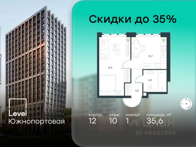Указанная акционная стоимость доступна при 100% оплате или ипотеке без субсидирования. Цена действует до 31.12.2025 23:49:59. Стоимость без акции 20952540. Старт продаж! Продаётся 1-комнатная квартира от застройщика ГК "КОРТРОС" в жилом комплексе бизнес-класса ULTIMAcity. Квартира расположена на 10 этаже 52 этажного корпуса 2. Общая площадь 50,61 м². Без отделки. В квартире: • Гардеробная ULTIMAcity — жилой комплекс бизнес-класса в перспективном районе на юго-востоке Москвы. На его территории появятся 9 башен на 756 этажей, двухуровневый подземный паркинг, собственная инфраструктура, включая детский сад и школу. Всего девелопер благоустроит территорию в 2,6 га. Ближайшая станция метро — "Южный порт". Она откроется в 2028 году и будет находиться в 2-х минутах ходьбы. А прямо напротив расположится остановка водного автобуса-электрохода "Синичка". Дорога от квартала будет удобна и для автомобилистов: - до Кремля — 12 км - до МКАД — 12 км - до выезда на ТТК — 3 км - до Садового кольца — 8 км В двух корпусах первой очереди ULTIMAcity этажностью 45 и 52 реализуется 1 079 квартир с продуманными, рациональными планировочными решениями. В ассортиментной линейке представлены однокомнатные квартиры от 28,2 до 61 кв. м, двухкомнатные лоты от 44,3 до 95,4 кв. м, квартиры с тремя (71 — 115,57 кв. м) и четырьмя спальнями (106,6 — 114,97 кв. м). В экспозиции также есть квартиры с террасами, лоджиями, тремя и четырьмя санузлами, а также с функциональными нишами-кладовыми на кухнях. Запроектированы и эксклюзивные двухуровневые резиденции со вторым светом, в том числе с видом на Москву-реку, площадью от 77,7 до 141,9 кв. м. В рамках проекта запланировано строительство 9 корпусов, школы на 500 учащихся и детского сада на 225 мест. Еще будет создана продуманная инфраструктура для жителей: детские и спортивные площадки, амфитеатр для мероприятий, беседки и теплицы для садоводства, коворкинг, детский клуб и ресторан с открытой террасой. Доступ в жилой комплекс осуществляется по биометрическому контролю - Face ID. Вокруг квартала будет приватная территория с видеонаблюдением и консьерж-сервисом 24/7. Лобби корпусов будут иметь двойные выходы: на улицу и во внутренний закрытый двор.
