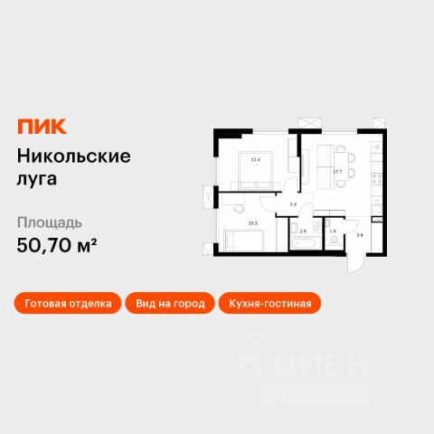 Продаётся 2-комн. квартира площадью 50,7 кв.м на 10 этаже 17 этажного дома (Корпус 4, Секция 6) проекта ПИК Никольские луга. Светлый просторный подъезд на уровне земли, функциональная планировка, большие окна, c отделкой. Жилой квартал "Никольские луга" расположен на юго-западе Москвы, в 17 минутах пешком от МЦД "Щербинка". Дорога на автомобиле до МКАД займёт 20 минут, а до Варшавского шоссе — всего 5 минут. Неподалёку находятся два больших парка — Бутовский лесопарк и парк "Южное Бутово". "Никольские луга" — большой проект, который отражает концепцию "город в городе". Он отличается современной архитектурой, а корпуса будут облицованы плиткой тёплых натуральных оттенков. Благодаря витражному остеклению на входе, в просторные лобби будет попадать ещё больше света. В проекте предусмотрены квартиры с балконами, в том числе угловыми с панорамным остеклением. Рядом с домами будет всё необходимое для комфортной жизни. Специально для проекта мы построим три детских сада, две школы и спортивный комплекс. Пруд на территории квартала будет благоустроен, а рядом с ним появятся места для отдыха у воды. На первых этажах домов откроются магазины и необходимые сервисы, в каждом дворе разместятся детские и спортивные площадки, а через весь район протянется несколько пешеходных бульваров. Артикул 963505 (Застройщик ООО "СПЕЦИАЛИЗИРОВАННЫЙ ЗАСТРОЙЩИК "ТЕРИБЕРСКИЙ БЕРЕГ")