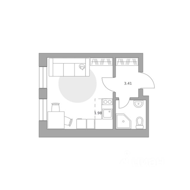 Продаётся студия 210, площадью 32,58 м², на 11 этаже в ЖК "Пехра" корпус 8. Стоимость — от 6152309 руб. Квартира без отделки, планировка односторонняя, окна во двор.