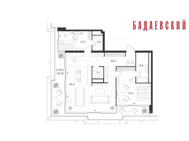 Продаётся 5-комнатная квартира общей площадью 207.50 м² на 11 этаже Жилого Комплекса Бадаевский. О нем говорили. Его ждали. Жилой комплекс "Бадаевский" на Кутузовском проспекте — это место для жизни, которое займет место в истории. Комплекс стал первым в истории московским проектом, победившим в категории Residential на World Architecture Festival. Девелопер Capital Group. В "Бадаевском" исторические здания завода и футуристические "парящие" дома создают единый комплекс, который станет новой достопримечательностью и символом Москвы. Панорамное остекление, террасы и веранды дарят неординарные и захватывающие виды. Благодаря расположению домов и панорамному остеклению, жилые пространства в "Бадаевском" будут наполнены светом. А виды из окон домов-"лент" на Москву-реку, пивоваренный завод, небоскребы "Москва-Сити" и Белый дом дополнены принципиально новым ощущением высоты. На территории Бадаевского завода появится масштабный ландшафтный парк с концепцией "русский лес". Впервые в истории района Дорогомилово у жителей появится прямая связь набережной Тараса Шевченко с Кутузовским проспектом. Близость Москвы-реки добавляет к преимуществам "Бадаевского" природную энергетику и приятные прогулки на свежем воздухе. Подземная парковка позволит сделать территорию завода полностью пешеходной, а сам комплекс представит новый подход к организации открытого и уединенного пространства в центре Москвы. Расположение в начале Кутузовского проспекта делает проект не только престижным, но и удобным: до Третьего транспортного и Садового кольца можно доехать за 5 минут, а Кремль и основные исторические достопримечательности расположены в 15 минутах на автомобиле. Напротив "Бадаевского" находится офисный кластер "Москва-Сити". Для жителей комплекс будет создано не только новое масштабное благоустройство, но и вся необходимая инфраструктура. В исторических корпусах появятся магазины, бутики, кафе и рестораны, коворкинг и крафтовая пивоварня, а в зданиях элеваторов — русская баня. Кроме того, запланирован фермерский рынок и досуговый кластер с музыкальной студией, центром детского творчества и фитнес-центром с бассейном.