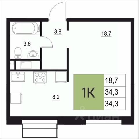 Планировка удобная и функциональная, что позволяет максимально использовать пространство. Встроенная гардеробная. Санузел совмещенный, выполнен в светлых тонах. Выход на лоджию из комнаты — отличное место для отдыха и наслаждения свежим воздухом.