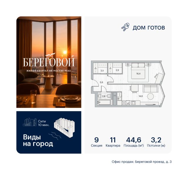 Река. Парк. Сити. Готовый дом в идеальном месте. Продается 1-комнатная квартира на 11 этаже с панорамным остеклением и видом на Береговой пр-д. Береговой — квартал-курорт в центре столицы. Готовый дом на первой линии Москвы-реки. Пешеходная набережная начинается прямо от дома — никаких дорог между вами и рекой. Уникальное сочетание природы парка Фили и ритма Сити. Ключи от нового образа жизни в Береговом: • 12 террас на крышах — ваши виды на Москву с высоты птичьего полета • Пешеходная набережная прямо у дома — ни одной машины между вами и рекой • Лобби с камином, переговорной и консьерж-сервисом • Флагманский Encore Fitness — самый большой в сети (4700 м²) с бассейном, термами и спа-комплексом • Детство на берегу Москвы-реки — в рамках проекта будут построены две школы и детский сад рядом с домом • Гастрономическая набережная: рестораны и премиум-сервисы откроются на первых этажах • Причал "Береговой" рядом с домом — путешествуйте по городу, пока другие стоят в пробках • Безопасность и уединение: контроль доступа на территорию, видеонаблюдение и круглосуточная диспетчерская • Двухуровневый подземный паркинг и кладовые Безупречная квартира для жизни: • Пространство света и воздуха: панорамные окна и высокие потолки 3.2 м • Технологии: центральное кондиционирование и роботизированная система очистки фасадов — вид из окна всегда будет идеальным • Совершенство планировки: просторная кухня-гостиная, минимум коридоров, максимум полезной площади • Квартира без отделки — возможность раскрыть преимущества планировки в вашем уникальном интерьере. Или выбирайте свою версию идеального дома в коллекции планировок: • С изолированными спальнями • Мастер-спальнями с гардеробными и ванными • Видовые ванные комнаты • Функциональные постирочные Эксклюзивные лоты: • Пентахусы с приватными террасами • Двухуровневые пентхаусы Локация, о которой мечтают 15 минут до Сити на машине — и вы в эпицентре деловой жизни. Две станции метро в пешей доступности — когда каждая минута на счету. Утром — пробежка по парку Фили, вечером — прогулка на велосипеде вдоль реки, выходные — водный спорт в Крылатском. Речные трамвайчики вместо такси, зеленые парки и благоприятная экология — привилегии престижного ЗАО Москвы. Условия покупки: выгодные программы покупки от застройщика, специальные условия при полной оплате. Оставляйте заявку на персональную презентацию в шоу-руме.