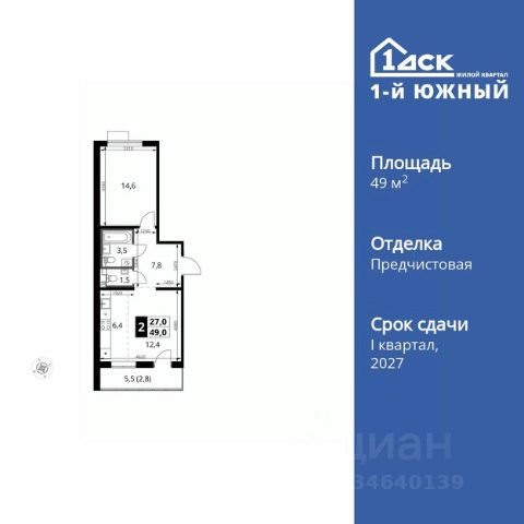 Прямая продажа от застройщика! Жилой Комплекс класса Комфорт Плюс. Продаётся 2-к квартира номер 866 общей площадью 44.4 кв.м. на 11-м этаже 24 этажного здания. Чистовая отделка. Цена с учётом скидки. Особенности квартиры: - МЦД-5 в пешей доступности - Квартал с южным садом - Свои 3 детских сада и 2 большие школы - Просторная спальня, в которой можно разместить большую кровать. - Линейная планировка - максимальная функциональность и удобство. - Раздельный санузел - больше удобства для всех членов семьи. - Евроформат - просторное и удобное жилье с отличной планировкой. - Кухня-гостиная - идеальное пространство для встреч с близкими. - Линейная кухня - функциональность и практичность в одном решении. - Ниша под шкаф - компактное и удобное место для вещей. - Лоджия - уютное место для отдыха и тишины. Информация о комплексе: Одно из преимуществ проектов 1- ДСК большие застекленные лоджии. Другое преимущество честный евро-формат. Во всем проекте предусмотрена система Умный дом. В состав устанавливаемого пакета устройств входит: WiFi реле для управления группами потребителей, беспроводной кран перекрытия с эл. приводом, беспроводной сенсор протечки, Яндекс Станция Мини. Его расположение можно назвать удачным за счет транспортной доступности и близости к природным объектам. По соседству лес, а в каждом дворе плодовые деревья. Весной квартал окутывает бело-розовое облако: это цветут яблони, груши, сливы. К августу в воздух наполняется ароматом созревших плодов. Зимой среди покрытых инеем деревьев протянулась лыжня. Транспортная доступность: - Общественный транспорт: Действующая ж/д станция Булатниково (в перспективе будущая МДЦ D5) в пешей доступности, всего 10-12 минут. - Личный автотранспорт: Удобный выезд на трассу М4-Дон в сторону Москвы и области 850 м, до МКАД - 1 км Внутренняя инфраструктура: Красивые продуманные подъезды - еще одно преимущество проекта 1-й Южный. Вход в сквозные подъезды есть и с улицы, и со двора. Благодаря сплошному остеклению в них всегда светло и уютно. Подъезды расположены на уровне земли, поэтому и молодым родителям с коляской, и жильцам с ограниченными возможностями вход и выход неудобств не доставят. В помещении предусмотрено место под стойку ресепшен с выводом инженерных сетей. Если жильцы решат на общем собрании, что необходим охранник или консьерж, организовать для них рабочее место можно быстро и с минимальными затратами. В подъездах предусмотрены уборные для детей и взрослых. Колясочные в каждом подъезде позволяют поддерживать порядок и чистоту на этажах. На случай прогулки с четвероногим питомцем в непогоду в подъездах устроены лапомойки. Во дворах и на общественных территориях 1-ого Южного столько всего интересного для юных обитателей. Собственные 3 детских сада и 2 больших школы буквально под окнами Изюминка проекта - пешеходный бульвар-дендрарий, он идеален для семейных прогулок. По сторонам прогулочной зоны разместились точки для самых разнообразных активностей. Централь