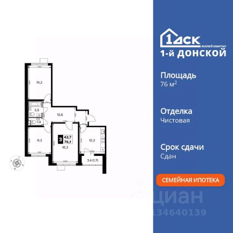 Квартира площадью 72.1 кв. метра с отличными видовыми характеристиками (окна во двор, парковую зону, водоем и улицу) расположена на 11 этаже монолитно-кирпичного дома, оборудованного двумя лифтами (грузовой и пассажирский) и пожарной лестницей.