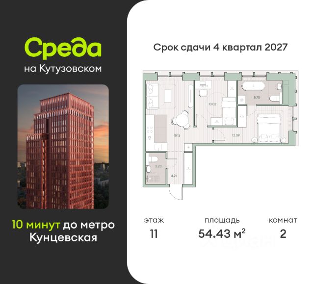 Прямая продажа от застройщика. В ЖК Сет продается 1-комнатная квартира площадью 53 м², расположенная в корпусе Б, на 11 этаже 59 этажного дома. Сет имеет стратегически выгодное расположение в ЗАО, в районе с большой историей и блестящим будущим: между природной зоной долины реки Сетунь и Кутузовским проспектом. В рамках возведения первой очереди предусмотрено три корпуса высотой 18, 45 и 59 этажей. На верхних этажах спроектированы общедоступные смотровые площадки с панорамным обзором на центр столицы. Преимущества проекта: • Функциональные планировочные решения • Контроль проникновения через входную дверь • Система управления освещением и температурой в квартире • Система защиты от протечек с функцией перекрытия воды • Вход в подъезд по биометрическим считывателям Face ID • Скоростные лифты • Двухуровневый подземный охраняемый паркинг на 495 машино-мест Застройка Сет включает в себя не только жилые корпуса, но и инфраструктурные объекты. Все необходимое для повседневного комфорта будет расположено в шаговой доступности: • Фитнес-клуб с бассейном • Ведущая городская школа, детский сад и школа искусств • Центр культуры и досуга • Медицинский центр • Кафе и рестораны Расположение комплекса: Пешком: • Метро "Давыдково" - 17 минут • Парк "Долина реки Сетунь" - 3 минуты • Открытие новых станций метро в шаговой доступности в будущем Инфраструктура: Разнообразить свой день резиденты Веер смогут также проводя больше времени на свежем воздухе. Двор разделен на 4 зоны разных эмоций и действий, которые пересечены и соединены веерными прогулочными маршрутами: • Спортивная площадка устроена в глубине ""Кленовой рощи"" • В ""Чайном домике"" будет создан навес с утеплением для отдыха в любую погоду • Площадки для детей воплотятся в ""Волшебный лес"" с цветами, зеркалами и световым дизайном • ""Центральная площадь"" устроена у водного оазиса живописного пруда. На машине: • "Москва-Сити" - 15 минут • Садовое кольцо - 20 минут • ТЦ "Океания" - 8 минут • ТЦ "Времена года" - 13 минут • Сколково - 12 минут • Гребной канал - 17 минут Компания MR предлагает своим клиентам специальные условия приобретения квартир в рамках программ ипотечного кредитования от банков-партнеров.