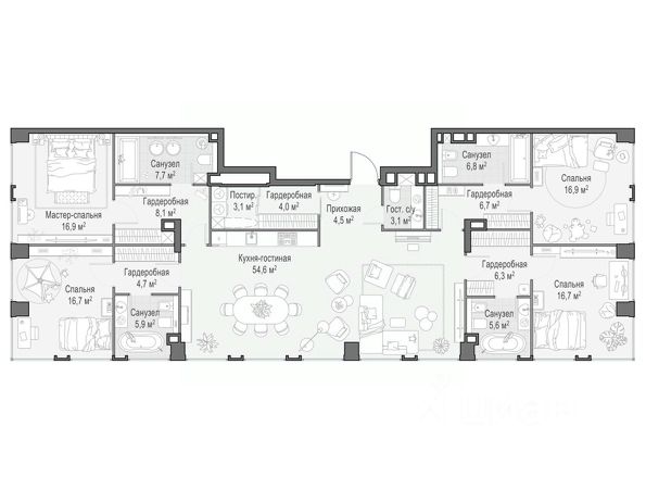 Скидка до 8% действует до 27.02.2026 г. при 100% оплате и не субсидированной ипотеке. В престижном районе Пресня, на перекрестке делового и исторического центров Москвы, продается многокомнатная квартира площадью 194.70 кв. м без отделки. Квартира находится на 11 этаже 48-этажного дома, в новом элитном жилом комплексе "Начало" от девелопера "Донстрой". Реализация проекта запланирована на 1 квартал 2030 года. Начало - футуристический дом на Пресне в нескольких минутах от Сити и Садового кольца. Проект по-настоящему космического масштаба, где есть все, чтобы раскрыть себя и свои возможности. Расположение Пресня - один из самых престижных районов Москвы. Жить здесь - значит стать частью истории столицы, быть в эпицентре деловой активности города и ощущать, как сама Вселенная вращается вокруг вас. - 5 минут пешком до Красногвардейских прудов; - 15 минут пешком до ст. метро "Улица 1905 года"; - 6 минут на автомобиле до Садового кольца и небоскрёбов "Москва-Сити"; - 12 минут на автомобиле до Кремля. Архитектура как путешествие Как росток пробивает скалу, как растет кристалл, как ракета устремляется ввысь - так формируется архитектурный образ этого дома. Точно выверенный баланс между футуристичными формами и функциональным содержанием дома выводит жизнь в нем на новую орбиту. Стеклянные фасады отражают небо и город, превращая здание в зеркало для окружающего ландшафта. Двор между небом и землёй Просторная территория двора с тремя тематическими зонами отдыха: "Млечный путь" - для детских игр и развлечений; "Космический сад" - для тихого отдыха и релакса; "Метеоритный сад" - для любителей спорта. Открытый променад - сквозной маршрут на крыше стилобата с зонами отдыха, занятий спортом, детских игр и совместной работы. Все площадки плавно связаны между собой прогулочной дорожкой. Теплая кольцевая галерея и мосты над пространством двора - все корпуса "стыкуются", точно модули космической станции. Главный центр притяжения В составе проекта возводится собственный комьюнити-центр, где создана идеальная атмосфера для любых начинаний: - Детский клуб для будущих покорителей Вселенной; - Коворкинги для решения задач планетарного и космического масштабов; - Переговорные для судьбоносных и просто важных встреч; - Лаунжи с атмосферой дзена и релакса; - Библиотека для спокойного чтения; - Кинотеатр для классики и блокбастеров. Территория комфорта и приватности Всё нужное рядом: - Современный образовательный центр со школой и детским садом - для ваших детей; - Фитнес-центр с бассейном - для релакса и борьбы со стрессом; - Ресторанная улица: кафе, рестораны, летние террасы - для деловых обедов и семейных ужинов; - Пекарня и минимаркет в доме - для ежедневных покупок; - Сквер у дома - для неспешных прогулок и спокойного отдыха; - Никаких такси на улице. Машина заберет вас прямо в подземном паркинге вашего корпуса.