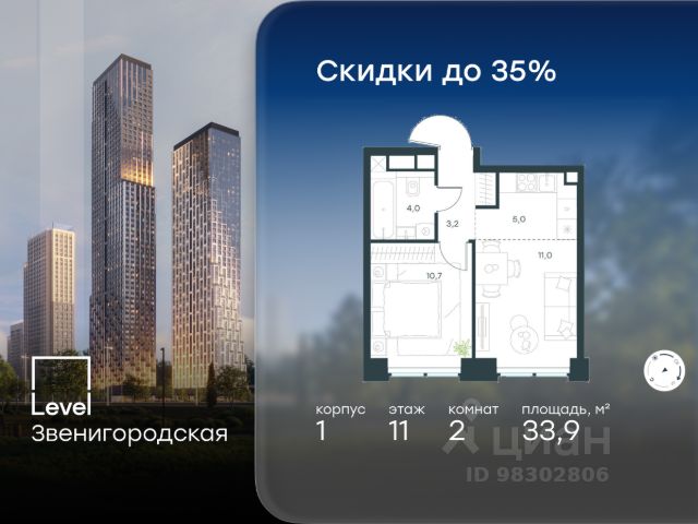 10 минут от Москва-Сити В продаже квартира площадью 40.73 м² без отделки на 11 этаже 46 этажного дома. Квартира расположена в корпусе Leo. JOIS это премиальный жилой комплекс от девелопера MR в районе Хорошёво-Мнёвники. Он включает несколько эффектных небоскрёбов высотой 47-56 этажей, эксклюзивные форматы квартир с панорамным остеклением, подземный двухуровневый паркинг на 239 м/м, собственную приватную инфраструктуру, закрытый ландшафтный парк 2,3 Га с функциональным зонированием и охраняемой территорией. Над проектом работали лучшие команды международных агентств с многолетним опытом: Genpro, S&P, iLight International и другие. Расположение Пешком: - 5 мин. ст. МЦК "Хорошёво"; - 15 мин. ст. м. "Народное ополчение"; - 10 мин. ст. метро "Звенигородская" с 2027 года; - 20 мин. причал "Карамышевский". На автомобиле: - 3 мин. до Звенигородского шоссе; - 5 мин. до ТТК: - 8 мин. до Серебряного бора и Строгинского затона - 10 мин. до ММДЦ "Москва-Сити"; - 40 мин. до аэропорта "Шереметьево"; Благоустройство - собственный ландшафтный парк 2,3 Га; - парк скульптур от Cosmoscow; - консьерж-сервис 24/7; - сервисный лифт и вход; - игровые и спортивные площадки; - коворкинг с библиотекой; - лаунж-зона с камином; - игровые комнаты для детей и клуб для подростков с оборудованием для видеоигр; - спортивная студия для индивидуальных тренировок; - гостиная с мини-кухней; - зоны для выгула собак; - подогрев пешеходных дорожек в зимний период; - автополив зелёных насаждений; - премиальные рестораны, кафе, химчистки, аптеки и супермаркеты. Окружение - 4 парка: Покровское-Стрешнево, Филёвский парк, Серебряный бор и Берёзовая роща; - 15 общеобразовательных заведений, в том числе две школы из самых лучших в Москве: государственная школа "Интеграл" и частная "Хорошкола"; - спортивное сооружение "ВЭБ Арена", домашний стадион ФК ЦСКА; - крупнейший в Европе торгово-развлекательный центр "Авиапарк".
