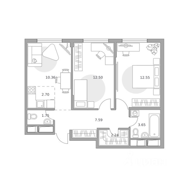 Продаётся 2-комнатная квартира 163, площадью 36,01 м², на 11 этаже в ЖК "Аникеевский" корпус 1.1. Стоимость — от 7703147 руб. Квартира без отделки, планировка односторонняя, окна на улицу.