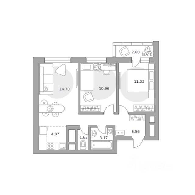 Продаётся 3-комнатная квартира 860, площадью 58,87 м², на 11 этаже в ЖК "Ильинойс" корпус 3. Стоимость — от 14480109 руб. Квартира без отделки, планировка угловая, окна на улицу.
