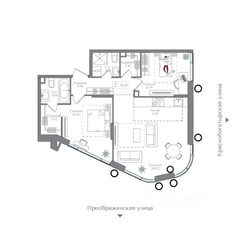 Угловая 4Е-квартира с мастер-спальней, кабинетом и лоджией — Приватный мастер-блок с 2 окнами, своей гардеробной зоной и кабинетом дает совсем другой уровень комфорта — Линейную или угловую кухню можно собрать под привычный вам сценарий жизни — 2 санузла добавляют удобства в утреннем и вечернем ритме семьи — Увеличенные окна во всех комнатах усиливают ощущение света, объема и класса — 2 варианта стильной отделки Формат для семьи, которой важны статус, приватность и продуманная ежедневная логистика. О доме Клубный дом премиум-класса на 82 квартиры — формат приватного сообщества, где знают своих. — Потолки 3,15-3,7 м и квартиры с продуманными планировками — Отделка на выбор или свобода для собственного дизайна — Архитектура GAFA в духе современной европейской урбанистики Двор и инфраструктура Многоуровневый приватный двор-сад, который радует в любое время года. Более двадцати видов деревьев, кустарников и многолетников — от зеленокорого клёна и пурпурной ивы до гортензии "Анабель". Галерея первого этажа объединяет пространство в единый архитектурный ансамбль. Сервис уровня 5 Консьерж 24/7, валет-паркинг, сервис чистоты и полное инженерное сопровождение. Отдельный вход для курьеров. Инженерия и комфорт Индивидуальная вентиляция, бесшумные скоростные лифты, современные инженерные системы. Безопасность Закрытая территория, видеонаблюдение, патруль, группа быстрого реагирования и распознавание номеров на въезде.