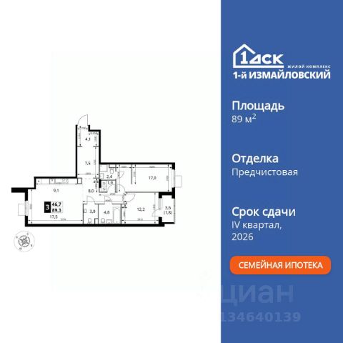 Прямая продажа от застройщика! Жилой Комплекс Комфорт класса. Продаётся 3-к квартира номер 670 общей площадью 89.3 кв.м. на 11-м этаже 15 этажного здания. Предчистовая отделка. Цена с учётом скидки. Особенности квартиры: - Организуем показ в удобное для вас время! - Мастер-зона с санузлом и гардеробной. Всё для вашего комфорта и удобства, включая личный санузел и гардероб. - Просторная спальня, в которой можно разместить большую кровать. - Распашная планировка - отличное сочетание удобства и свободы. - Душ помимо ванной - дополнительное удобство для вашей семьи. - Постирочная с возможностью установки сушилки - удобство для ежедневных дел. - Раздельный санузел - больше удобства для всех членов семьи. - Евроформат - просторное и удобное жилье с отличной планировкой. - Гибкая планировка - создайте пространство по своему вкусу. - Место для игры/занятия спортом - идеальное пространство для активных детей. - Можно оборудовать рабочее место - комфорт для работы и учёбы. - Можно сделать распашные двери - удобный доступ и стильный акцент. - Просторная мягкая зона - комфорт и уют для отдыха всей семьи. - Кухня-гостиная - идеальное пространство для встреч с близкими. - Линейная кухня - функциональность и практичность в одном решении. - Наличие острова на кухне - удобство и стиль для вашей кухни. - Возможность добавить спальное место - дополнительный комфорт для гостей. - Гардеробная - удобство для хранения и организации вещей. - Хозяйственный блок - удобно организованное пространство для бытовых нужд. - Ниша под шкаф - компактное и удобное место для вещей. - Лоджия - уютное место для отдыха и тишины. - Панорамное остекление лоджии - открывает вид на окружающий мир. Квартира с предчистовой отделкой. Вам не придется заниматься черновыми и трудоёмкими работы, а чистовую отделку и дизайн - сделайте на свой вкус. Информация о комплексе: ЖК "1-й Измайловский" в восточной части Москвы: идеальное место для жизни в окружении 14 000 гектаров леса. Наслаждайтесь лыжными прогулками зимой и пробежками летом в сиреневом саду и лесопарках. Комплекс отгорожен от шоссе застройкой первой линии и садами здоровья. Из окон открываются виды на парк "Лосиный остров" и зеленые дворы. Близость к природе и спортивным объектам создаёт атмосферу здорового образа жизни. Транспортная доступность: Не более 2,5 км до станций метро "Щёлковская" и "Черкизовская" и МЦК "Локомотив". Щёлковское шоссе соединяет квартал с Северо-восточной хордой и МКАД, Центральным автовокзалом и Восточным железнодорожным вокзалом. Две автобусные остановки в паре минут ходьбы и 11 маршрутов общественного транспорта. На автомобиле 3 минуты до СВХ 12 минут до ТТК 15 минут до Садового кольца Внутренняя инфраструктура: ЖК расположен в историческом районе Москвы с развитой инфраструктурой. В шаговой доступности: 6 детских садов (включая собственный на 125 мест), 3 школы, поликлиники, торговые центры и парки. Проект создан для здорового образа жизни: рядом стадионы,