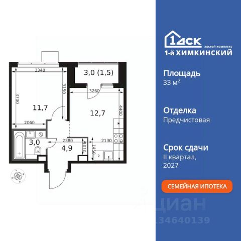 БЕЗ ПЕРВОНАЧАЛЬНОГО ВЗНОСА! • ИПОТЕКА 10% ДЛЯ ВСЕХ БЕЗ НАЦЕНОК • ДОСТУПНО ПО СЕМЕЙНОЙ ИПОТЕКЕ Прямая продажа от застройщика! Жилой Комплекс класса Комфорт. Продаётся 1-к квартира номер 552 общей площадью 38.7 кв.м. на 11-м этаже 13 этажного здания. Отделка Whitebox. Цена с учётом скидки. Особенности квартиры: - Линейная планировка - максимальная функциональность и удобство. - Раздельный санузел - больше удобства для всех членов семьи. - Гардеробная - удобство для хранения и организации вещей. - Лоджия - уютное место для отдыха и тишины. Квартира с предчистовой отделкой (White box). Вам не придется заниматься черновыми и трудоёмкими работы, а чистовую отделку и дизайн - сделайте на свой вкус. Информация о комплексе: Квартал класса комфорт плюс, где современное городское пространство граничит с удивительной природой вокруг. 1-й Химкинский расположен на территории в 102 га и органично вписан в природное окружение Химкинского леса и канала им. Москвы. В проекте предусмотрена богатая коммерческая инфраструктура с собственным торговым центром, общеобразовательные учреждения и социальные объекты. Изюминкой жилого комплекса будут спортивно-оздоровительный комплекс с термами и SPA и семейный парк развлечений. Транспортная доступность: ЖК "1-й Химкинский" дает возможность выбрать любой способ передвижения как до города, так и до самых разных объектов, которые могут представлять интерес для его жителей. Не важно, какой способ передвижения вы предпочитаете, успевать всегда и везде можно вне зависимости от выбора транспорта. - 8 мин. пешком (800 м) до остановки "Золотая Арка" -10 мин пешком (1 км) до остановки "Поворот на Ивакино" Внутренняя инфраструктура: - Безопасность: закрытые дворы без машин, безбарьерная среда и сквозные подъезды, камеры на детских площадках с возможностью трансляции на смартфоне - Идеальный отдых в кругу семьи: семейный парк развлечений на территории, торговый центр (2-х этажный) общей площадью более 8 тыс. кв. м с фудкортом - Образование: 3 детских сада и современная муниципальная школа на 2450 мест - Спортивная среда: закольцованный веломаршрут с навигацией, спортивный комплекс с термами, закрытый тренажерный зал и зоны ворк-аута - Социальные объекты: поликлиника со станцией скорой помощи, пожарное депо - Подземный паркинг и кладовые помещения на -1 этаже, станция техобслуживания и автомойка на территории