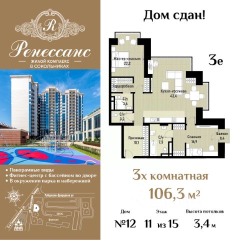 Продаётся 3-комнатная квартира 98.97 м² в жилом комплексе SOLOS (бизнес-класс) рядом с парком Сокольники. Квартиру отличают панорамное остекление, потолки 3.2 м, улучшенная шумо и воздухоизоляция. Дом сдаётся в 4 квартале 2029 года, продажи проходят через эскроусчета. Подземный паркинг, коворкинг, закрытая благоустроенная территория с фонтаном и артобъектами. Гибкие условия покупки. Ключевые преимущества: — Расположение в одном из самых популярных районов старой Москвы, рядом с одним из крупнейших парков столицы — "Сокольники". — До парка 2 минуты пешком. — Удобный выезд на Третье транспортное кольцо. — Метро "Сокольники" в пешей доступности. Архитектура и проект: Solos — две башни бизнескласса, спроектированные архитектурным бюро Kleinewelt Architekten. Прозрачная, лаконичная архитектура с панорамным остеклением открывает виды на парк и центр города. Высота потолков — 3,2 метра, большие окна в пол. В квартирах предусмотрены инженерные решения для акустического комфорта и чистый воздух благодаря близости парка и современным системам вентиляции. Территория: Закрытый двор с благоустройством в созерцательном стиле: фонтан, артобъекты, зоны тихого отдыха, детские и спортивные площадки. Приватность и безопасность обеспечены современными системами доступа и видеонаблюдения. Инфраструктура: — Подземный паркинг; — Коворкинг для резидентов; — Рестораны и кофейни на первых этажах; — Зоны отдыха и озеленения. Гарантии и надёжность: Застройщик — молодая команда с опытом реализации проектов в сегменте бизнескласса. Все продажи ведутся через эскроусчета: ваши средства остаются на счетах в банке и не могут быть использованы до сдачи дома. Условия покупки: — Ипотека от ведущих банков (программы с господдержкой); — Возможна рассрочка на этапе строительства; — Инвестиционные пакеты для сдачи квартир в аренду. Запишитесь на консультацию и выберите свою квартиру уже сегодня. Мы поможем рассчитать ипотеку, подберём планировку и проведём виртуальный или живой тур по шоуруму. Здесь, среди деревьев и новой архитектуры, остаётся пространство для искренности, созидательности и чувствительности (sense-centric).