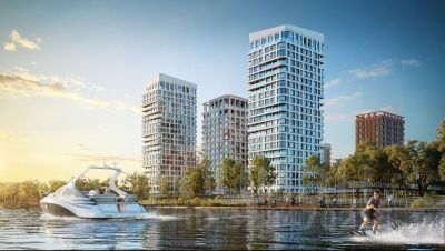 ЖК Остров инновационный бизнес квартал в окружении воды. Уникальная территория со всех сторон река Москва и 650 га заповедника Москворецкого природного парка.