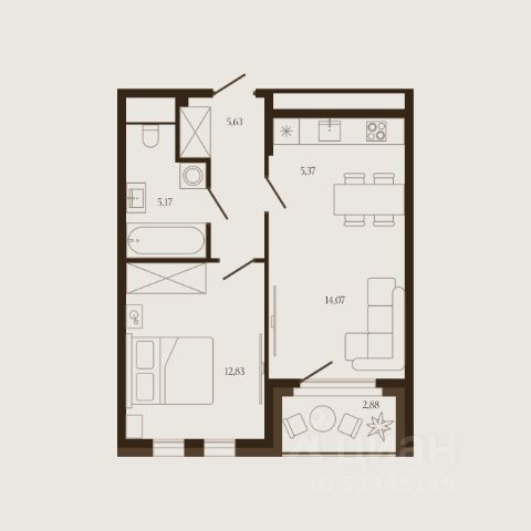 Общая площадь: 100.60 м.кв., Жилая площадь: 58.50 м.кв., Площадь кухни: 16.10 м.кв.