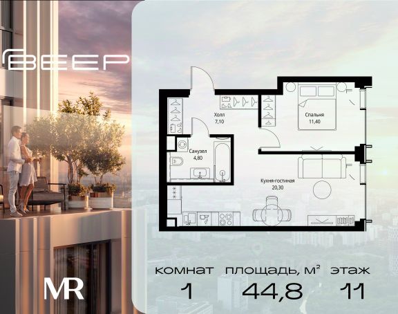 Прямая продажа от застройщика. В ЖК Сет продается 1-комнатная квартира площадью 53 м², расположенная в корпусе Б, на 11 этаже 59 этажного дома. Сет имеет стратегически выгодное расположение в ЗАО, в районе с большой историей и блестящим будущим: между природной зоной долины реки Сетунь и Кутузовским проспектом. В рамках возведения первой очереди предусмотрено три корпуса высотой 18, 45 и 59 этажей. На верхних этажах спроектированы общедоступные смотровые площадки с панорамным обзором на центр столицы. Преимущества проекта: • Функциональные планировочные решения • Контроль проникновения через входную дверь • Система управления освещением и температурой в квартире • Система защиты от протечек с функцией перекрытия воды • Вход в подъезд по биометрическим считывателям Face ID • Скоростные лифты • Двухуровневый подземный охраняемый паркинг на 495 машино-мест Застройка Сет включает в себя не только жилые корпуса, но и инфраструктурные объекты. Все необходимое для повседневного комфорта будет расположено в шаговой доступности: • Фитнес-клуб с бассейном • Ведущая городская школа, детский сад и школа искусств • Центр культуры и досуга • Медицинский центр • Кафе и рестораны Расположение комплекса: Пешком: • Метро "Давыдково" - 17 минут • Парк "Долина реки Сетунь" - 3 минуты • Открытие новых станций метро в шаговой доступности в будущем Инфраструктура: Разнообразить свой день резиденты Веер смогут также проводя больше времени на свежем воздухе. Двор разделен на 4 зоны разных эмоций и действий, которые пересечены и соединены веерными прогулочными маршрутами: • Спортивная площадка устроена в глубине ""Кленовой рощи"" • В ""Чайном домике"" будет создан навес с утеплением для отдыха в любую погоду • Площадки для детей воплотятся в ""Волшебный лес"" с цветами, зеркалами и световым дизайном • ""Центральная площадь"" устроена у водного оазиса живописного пруда. На машине: • "Москва-Сити" - 15 минут • Садовое кольцо - 20 минут • ТЦ "Океания" - 8 минут • ТЦ "Времена года" - 13 минут • Сколково - 12 минут • Гребной канал - 17 минут Компания MR предлагает своим клиентам специальные условия приобретения квартир в рамках программ ипотечного кредитования от банков-партнеров.