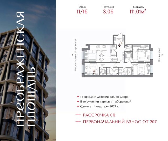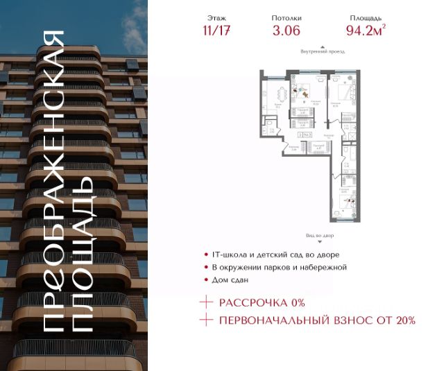 Рассрочка 0% с первоначальным взносом от 20% Квартира на 11 этаже в жилом комплексе премиум-класса "Преображенская площадь". Общая площадь: 45.5 кв.м. Проект премиум-класса в историческом районе Москвы. До метро "Преображенская площадь" 3 минуты пешком. Квартиры сдаются без отделки и в свободной планировке, чтобы жители могли оформить пространство с учетом своей индивидуальности. Высота потолков от 3,15м, широкоформатное остекление, 3-5 квартир на этаже. Система Умный дом. Дизайнерские лобби. Внутренний двор 1,5 га функциональное и безопасное пространство для игр, работы и занятий спортом. Пешеходный променад для прогулок. Дома переменной этажности. Есть подземный паркинг. Жилой комлекс находится в окружении парков Сокольники, Черкизовский, Измайловский, заповедника Лосиный остров и ВДНХ, а также вблизи пешеходной набережной. Комфортная удаленность от центра: 7 минут на автомобиле до ТТК, 8 минут до Садового кольца, 25 минут до Кремля.