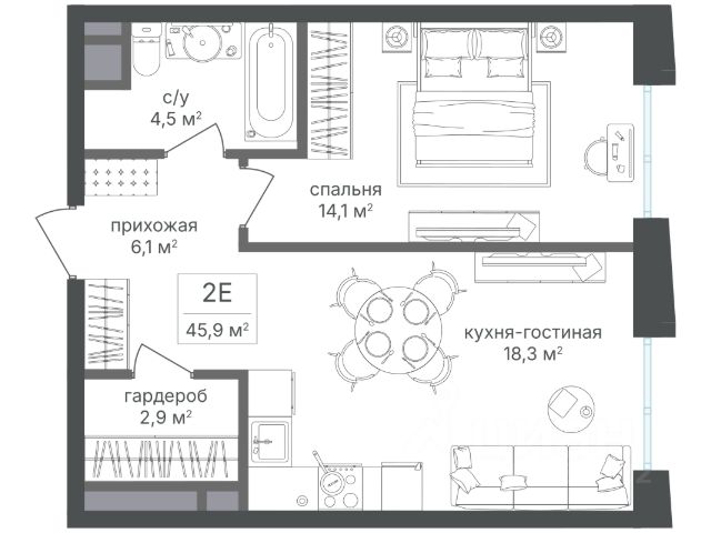 Ипотека для каждого! Полная стоимость кредита от 12,380% до 18,537%. Ставка от 0,11% в АО "Альфа-Банк", ген. лицензия ЦБ РФ 1326 от 16.01.2015. Ставка фиксируется на первые 12 месяцев, далее полная стоимость кредита от 22,022% до 24,599% ставка 21,59%. Первоначальный взнос — от 20,1% от стоимости квартиры. Срок кредитования — от 4 до 30 лет. Ипотека на весь срок! Полная стоимость кредита от 23,396% до 26,058% со ставкой 14,5%! Первоначальный взнос —от 20,01% от стоимости квартиры. Срок кредитования — от 3 до 30 лет. АО "Банк ДОМ.РФ" универсальная лицензия Банка России 2312 от 19.12.2018. Скидка 7% при покупке квартиры! Цена указана с учетом максимального размера скидки. Продается 1-к квартира 46,1 кв.м. в ЖК "Семеновский парк 2" на 11-м этаже 18 этажного дома. Компания "РГ-Девелопмент" предоставляет скидку на квартиры в жилом комплексе. Акция действительна до 15.04.2026 включительно. Чтобы воспользоваться предложением, необходимо подписать договор на приобретение недвижимости до 15.04.2026 включительно. Компания "РГ-Девелопмент" вошла в ТОП-10 девелоперов по объёму введённого жилья в "Старой Москве" по итогам 2025 года. Прямая продажа от застройщика! Квартиры без отделки. Срок сдачи корпуса - 1 кв. 2026 г., корпус сдан. Выдача ключей. ЖК "Семеновский парк 2" - это идеальное место для того, чтобы стать вашим домом. Проект расположен в исторической части Москвы вблизи Измайловского лесопарка, в 1 км от ЦАО. 4 станции метро отделяют вас от Красной площади и 15 минут на автомобиле - от Садового кольца.
