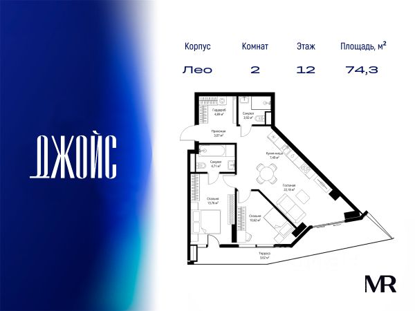 Продаётся 2-комнатная квартира 548, площадью 69,35 м², на 12 этаже в ЖК "Мнёвники от Гранель" корпус 1. Стоимость — от 35322545 руб. Квартира без отделки, планировка угловая, окна на улицу.