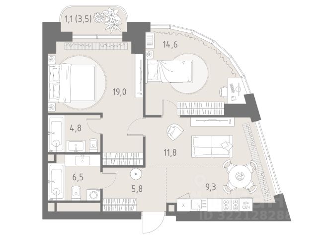 • ✅ Минимальная площадь: 21,6 м²
