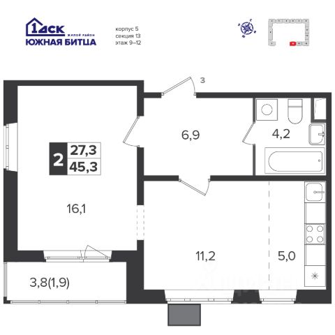 Прямая продажа от застройщика! Семейный жилой район класса Комфорт Плюс Продаётся 1-к квартира номер 594 общей площадью 38.1 кв.м. на 12-м этаже 24 этажного здания. Отделка Whitebox. Цена с учётом скидки. Особенности квартиры: - Линейная планировка - максимальная функциональность и удобство. - Просторная кухня - место для семейных ужинов и кулинарных экспериментов. - Гардеробная - удобство для хранения и организации вещей. - Лоджия - уютное место для отдыха и тишины. - Панорамное остекление лоджии - открывает вид на окружающий мир. Квартира с предчистовой отделкой (White box). Вам не придется заниматься черновыми и трудоёмкими работы, а чистовую отделку и дизайн - сделайте на свой вкус. Информация о комплексе: Сочетание свободного перемещения по внутреннней территории без машин и ощущения абсолютной безопасности благодаря надежным ограждениям - вот что отличает ЖК Южная Битца. На территории комплекса созданы все условия как для активного образа жизни, так и для спокойного времяпрепровождения. Свободно перемещайтесь по внутренней территории в безбарьерной среде! Продуманное зонирование во дворах позволяет отделить тихие зоны для родителей со спящими младенцами и тех, кто хочет почитать на свежем воздухе, от шумных игровых зон. Игровые зоны учитывают возраст детей. Площадки для детей старшего возраста вынесены за пределы дворов. Ощущение уютного дома должно начинаться с подъезда. Мы постарались предусмотреть все нюансы, чтобы наши лифты отвечали самым строгим современным требованиям. А наличие кладовых позволит вам поддерживать идеальный порядок и уют в вашей квартире! Транспортная доступность: В 3 км от МКАД в нескольких минутах езды до трех станций метро: Аннино, Бульвар Дмитрия Донского, улица Старокочаловская и станции МЦД2 - жд Бутово. Внутренняя инфраструктура: Для жителей жилого района "Южная Битца" доступна развитая инфраструктура близлежащих московских районов Чертаново, Южное, Бирюлёво Западное, Северное Бутово и Южное Бутово. Множество образовательных учреждений, объекты здравоохранения, торговые и развлекательные центры, кинотеатры, кафе, рестораны, парки.