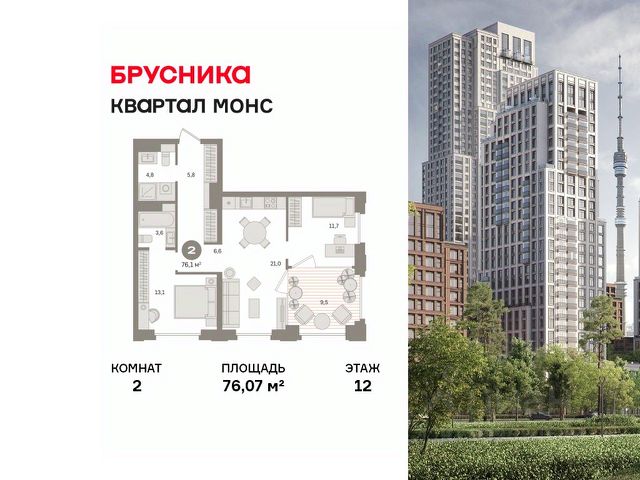 Указанная акционная стоимость доступна при 100% оплате или ипотеке без субсидирования. Цена действует до 31.12.2025 23:49:59. Стоимость без акции 34647224. Продается 2-комнатная квартира от застройщика в ЖК премиум-класса TATE на 12 этаже. Общая площадь 61,81 м². Отделка предчистовая (white box). 2 санузла. Вид из окна на Парк Сокольники, Москва Сити. Угловое остекление. Мастер-спальня. Башня A. Срок сдачи: 2 кв. 2027 Выдача ключей: 4 кв. 2027 Проект расположен на границе с ЦАО в районе Марьина Роща на улице Веткина. В шаговой доступности находится метро Марьина роща (5 минут), парки "Останкино" и "Сокольники" (15 минут). До центра столицы время в пути составит 15 минут на авто. На территории премиум квартала откроют спа- и фитнес-центр, бассейн, оборудуют детские и спортивные площадки. Предусмотрен подземный двухуровневый паркинг с контролем доступа и лифтом на жилые этажи. Паркинг рассчитан на 568 машино-мест. Доступ в жилой комплекс осуществляется по биометрическому контролю - Face ID. Территория закрытая с видеонаблюдением и консьерж-сервисом 24/7. Особенности ЖК: - 2 башни высотой от 41 до 49 этажей. - Исторический район; - Панорамная лаундж-зона на высоте 140 м; - На 4041 этажах видовые пентхаусы площадью до 200 м²; - Два вида отделки: лаконичный и монохромный WhiteBox или готовые интерьеры с безупречным чувством меры - Лобби с потолками высотой почти 6 м; - В отдельном 6-этажном здании на территории будут: просторный фитнес-центр с бассейном, концептуальный ресторан, офисные пространства; - Детские зоны и спортивные площадки; - 6 скоростных лифтов; - Лапомойки для животных; - Безбарьерная среда.